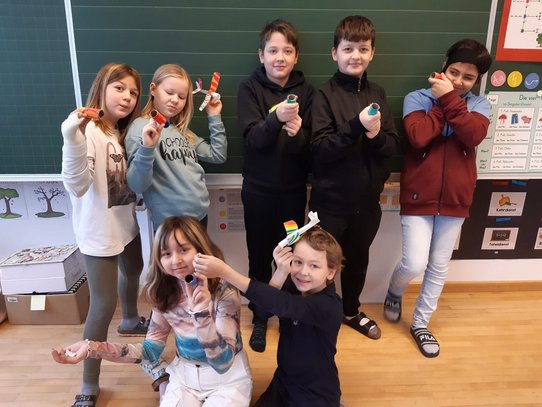 Besonders viel Spaß machte den Viertklässlern das Designprojekt, bei dem ein gemeinsames Kunstwerk für unser Schulgebäude geschaffen wurde.